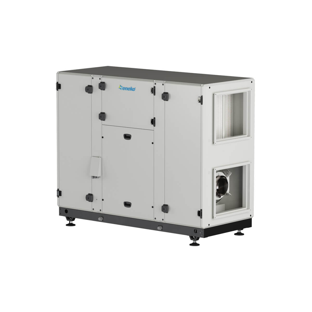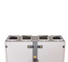 • Hava debisine göre iki farklı alternatif, 8 model, nominal debisi 950 – 10200 m3/h olan; ERV Serisi santraller yatay akışlı / çıkışlı